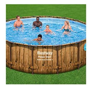 - Größe: 488 x 122 cm, Wasserkapazität (90%): 19.840 Liter, Holz-Optik (Pinie), Boden in Kieselmosaik-Optik, einfacher Aufbau ohne Werkzeug, 4 integrierte Bullaugen