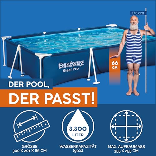 Bestway Steel Pro Frame Pool ohne Pumpe 300 x 201 x 66 cm, dunkelblau, eckig