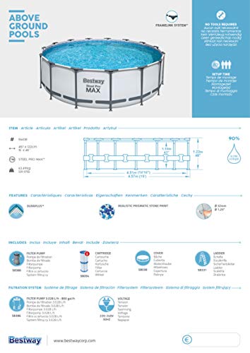 - Größe: 457 x 122 cm, Wasserkapazität (90%): 16.015 Liter, einfacher Aufbau ohne Werkzeug, Innenverkleidung in Kieselmosaik-Optik