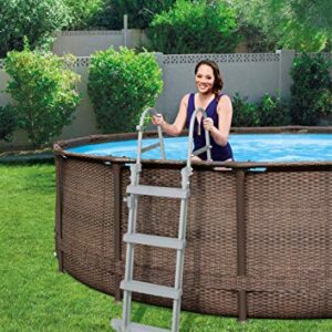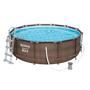 - Lieferumfang: Bestway Steel Pro Max Stahlrahmenpool, inklusive Filterpumpe 2.006 l/h, Filterkartusche, Poolleiter und Reparaturflicken, Maße: 366 x 100 cm , Material: TriTech, Farbe: Rattan/Braun