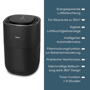 - EINFACHE BEDIENUNG: Der Luftbefeuchter verfügt über eine digitale Luftfeuchtigkeitsanzeige und einem auswechselbaren Filter, der eine Filterwechselanzeige enthält