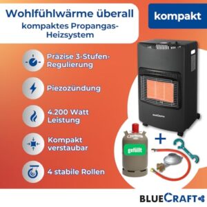 - 1️⃣ KOMPLETT-SET: INFRAROT-GASHEIZOFEN 4,2kW mit GASDRUCKREGLER für den Betrieb im Freien, GASSCHLAUCH, Bluecraft 2 in 1 GASREGLER-SCHLÜSSEL mit Magnet, 11kg Gasflasche gefüllt