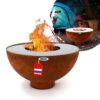 - GRILLPARTY: Für noch mehr Geselligkeit an der Feuerschale sorgt der aufsetzbare, 70 cm durchmessende Grillrost. Komplett aus Stahl gefertigt, besitzt sie nicht nur rustikalen Charme, sondern ist auch besonders robust und witterungsunempfindlich.