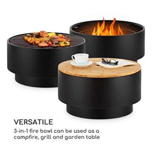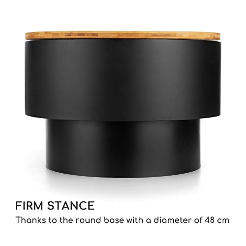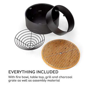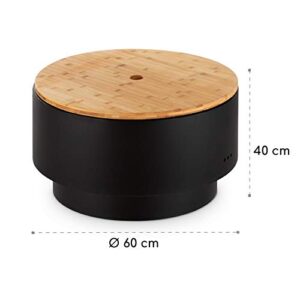 - STYLISCH: Allerdings kannst du die Pompeji Feuerschale mit ihrer mitgelieferten Bambusplatte auch als stylischen Gartentisch nutzen. Ihr runde Form und das elegante Schwarz fügen sich spielend in jedes Garten- oder Terrassenambiente ein.