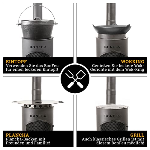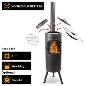 - HOCHWERTIGE MATERIALEN - Bei der Produktion unserer 30 x 30 x 153 cm Kaminöfen gehen wir keine Kompromisse ein. Neben dem Gartenkamin ist im Lieferumfang ein praktischer Grillrost, ein Wok-Ring und ein Schürhaken dabei. Somit bist du bestens ausgestattet.