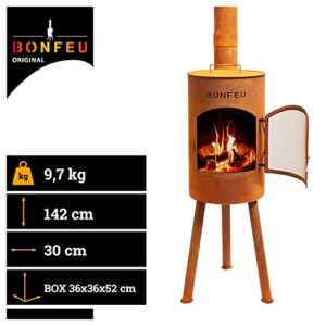 - HINWEIS - Es ist ganz normal, dass Stahl rostet. Folglich wird auch dieser Kamin mit der Zeit rosten und sich verfärben. Keine Panik, das verleiht Ihrem BonFeu Kamin sein robustes und stabiles Aussehen.