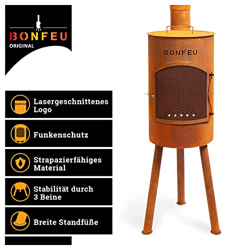 - FÜR ENTSPANNTE ABENDE - Der stilvolle Outdoor Kamin aus hochwertigem Cortenstahl überzeugt durch sein ästhetisches Aussehen gepaart mit kompromissloser Funktionalität. Mach dir einen schönen Abend mit deinen Freunden oder der Familie und genieße.