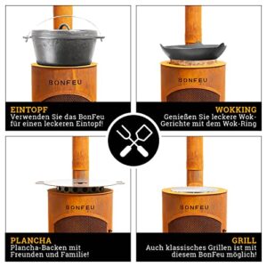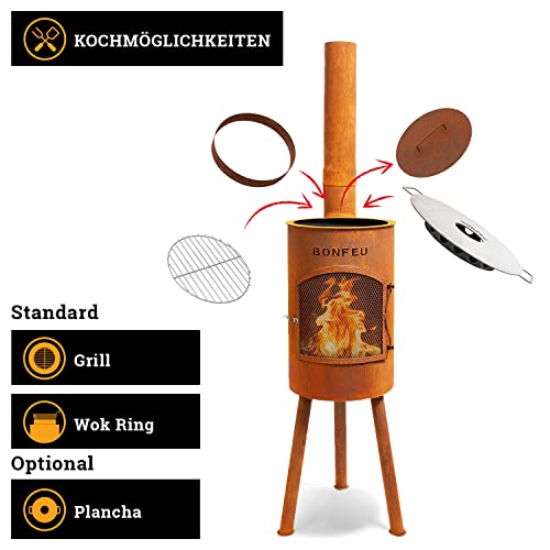 - HOCHWERTIGE MATERIALEN - Bei der Produktion unserer 30 x 30 x 142 cm Kaminöfen gehen wir keine Kompromisse ein. Neben dem Gartenkamin ist im Lieferumfang ein praktischer Grillrost, ein Wok-Ring und ein Schürhaken dabei. Somit bist du bestens ausgestattet.