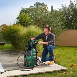 - Kompakt und praktisch: Der Hochdruckreiniger bietet eine integrierte Aufbewahrung für Düsen und Schlauch