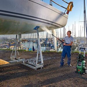 - Der Strahlreiniger liefert 570 Liter Wasser pro Stunde dank leistungsstarkem 2600-Watt-Motor und 160 bar Druck
