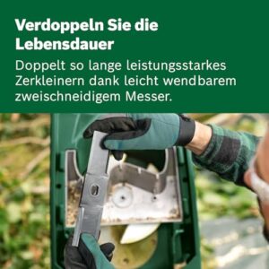 - Das Wendemesser sorgt für effektives Häckseln von Ästen bis 35 mm Dicke mit mehr Leistung und Effizienz