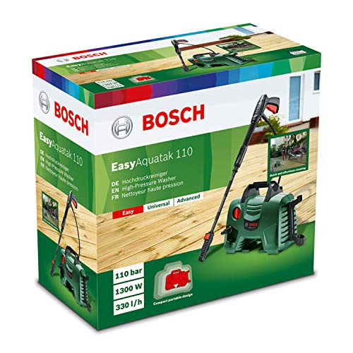 - Lieferumfang: EasyAquatak 110, Hochdruckpistole, 3 m Schlauch, Roto-Punkt-Düse, Hochdruck-Schaumdüse, Flachstrahl-Düse, transparenter Wasserfilter, Karton (3165140935661)