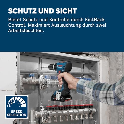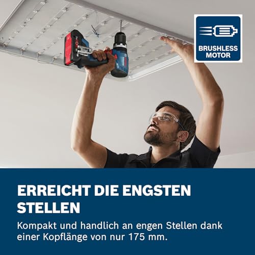 Bosch Professional 18V System Akku-Bohrschrauber GSB 18V-65 (bürstenloser Motor, Kopflänge 175, inkl. 2x Akku GBA 4.0Ah, L-BOXX)