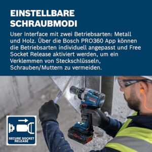 - Innovative Secure Socket Release (Aktivierung über App) verhindert, dass das Einsatzwerkzeug auf der Schraube/Mutter stecken bleibt