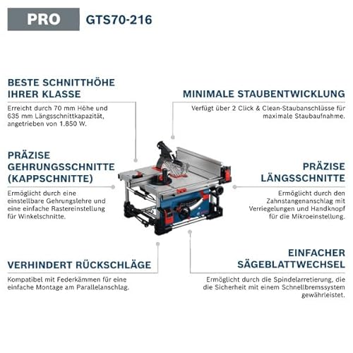 - KOMPAKTES DESIGN: Transportiere die GTS 70-216 Professional ganz einfach mit einer Hand für Schneidarbeiten unterwegs.