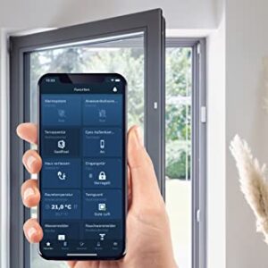 - Smarter Sensor: Erkennt zuverlässig geöffnete Türen und Fenster, zeigt deren Status in der App und dient durch integrierten Button als Auslöser für Aktionen oder Szenarien im Smart Home