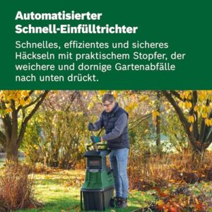 - Der automatisierte Schnell-Einfülltrichter ermöglicht müheloses Zerkleinern von Holzmaterialien mit bis zu 45 mm Durchmesser