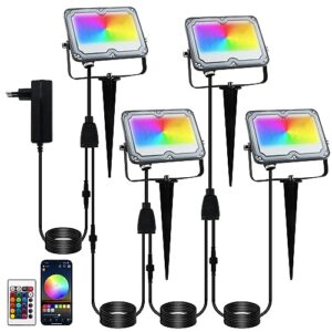 - 【RGBW farbwechselndes Landschaftslicht】 16 Millionen Farben können eingestellt werden, Helligkeit und Farbe können einfach angepasst werden, dynamischer Modus, wählen Sie das richtige Lichtthema entsprechend verschiedenen Umgebungen. Steuern Sie den Scheinwerfer über die Fernbedienung oder APP und wählen Sie Ihre bevorzugte Farbe und Modus.