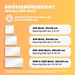 - ENERGIESPAREND: Eine Infrarot Heizung ist deutlich effizienter und umweltfreundlicher als ein normaler Heizkörper. Unsere Elektroheizung verfügt über einen Überhitzungsschutz und ist für jeden Raum geeignet. Planen Sie bitte bei der Leistung mit 100-120 Watt/m²