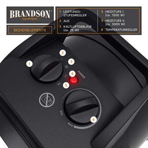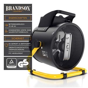 - SOFORT WÄRME AUF KNOPFDRUCK. Aufstellen, anschalten und wohlfühlen. Der Brandson Baustellen Heizlüfter wurde entwickelt für den professionellen Dauereinsatz. Keramische Heizelemente und Ventilatorflügel aus hitzebeständigem Metall stehen für eine hohe Bauteilequalität. Daraus resultiert eine gleichmäßige Wärmeerzeugung und -verteilung. Geeignet für Wohnung und Büro, Camping, Keller und Garage. Ideal für mittelgroße Räume. | 303848