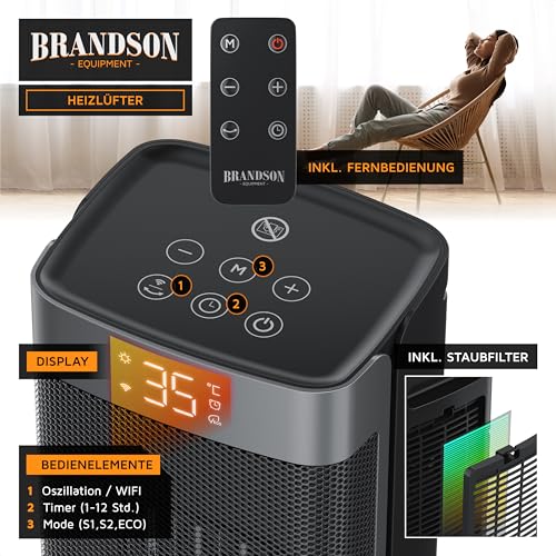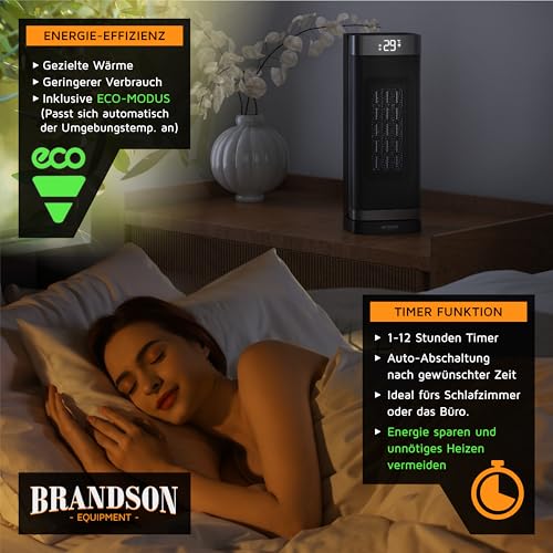 - ENERGIEEFFIZIENT & KOMFORTABEL: Zuschaltbare Oszillation, Temperatursteuerung und ein einstellbarer Timer für sparsamen Betrieb und gleichmäßige Wärmeverteilung. Außerdem verfügt der Heizer über einen ECO-Modus mit dem das Gerät die Heizstufen 1 und 2 automatisch der Umgebungstemperatur anpasst, die Wunschtemperatur kann hierbei eingestellt werden!