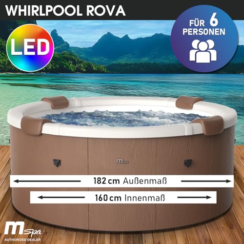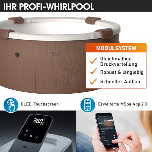 - 𝐈𝐡𝐫 𝐏𝐫𝐨𝐟𝐢 𝐖𝐡𝐢𝐫𝐥𝐩𝐨𝐨𝐥 𝐟ü𝐫 𝐙𝐮𝐡𝐚𝐮𝐬𝐞: Schaffen Sie Wellnessmomente mit dem Außenwhirlpool ROVA für bis zu 6 Personen. Der runde Whirlpool verspricht ein exklusives Spa-Erlebnis zum kleinen Preis. Das neue WPC-Modulsystem mit cleveren Zapfenverbindungen & leichten Seitenteilen ermöglicht einen schnellen, stabilen Aufbau in 15 Minuten. Das abgerundete Design sorgt für gleichmäßige Druckverteilung & hohe Langlebigkeit. Die Steuerung erfolgt über das OLED-Display oder die erweiterte MSpa App 2.0