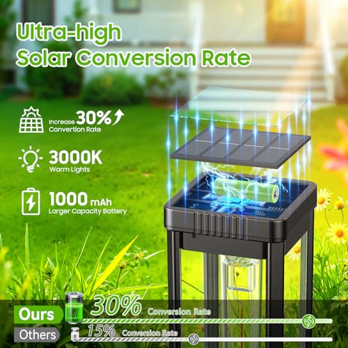 - 15 Std. Verlängerte Laufzeit: BUCASA Solar Gartenleuchten verwenden monokristalline Silizium-Panels (30 % Umwandlungswirkungsgrad, der weit über dem von herkömmlichen Panels liegt) und verfügen über einen 1000-mAh-Batterie, der 10 bis 15 Std. kontinuierliche, stabile Beleuchtung von der Dämmerung bis zum Morgengrauen ermöglicht. Halten Sie Ihre Wege unter dem Nachthimmel hell erleuchtet, ohne Angst vor der Dunkelheit zu haben, und genießen Sie eine warme Beleuchtung ohne Stromkosten