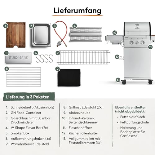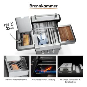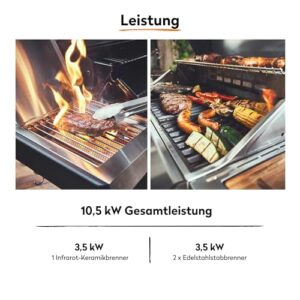 - MAXIMALE BBQ POWER - 900 °C Keramikbrenner im Seitentisch & 2 leistungsstarke Edelstahl-Stabbrenner