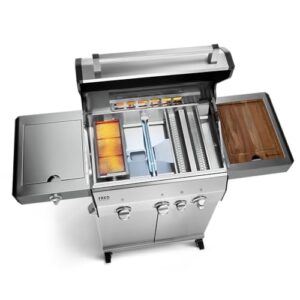 - MAXIMALE BBQ POWER - Infrarot-Heckbrenner, innenliegender 900°C Keramikbrenner, 2 stufenlos regulierbare Edelstahl-Stabbrenner & Seitenkochfeld