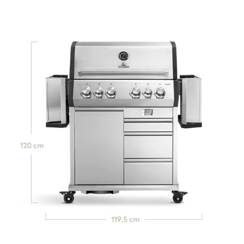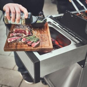 - UNSCHLAGBAR HEISS: Mit dem zusätzlichen Infrarot-Keramikbrenner im abklappbaren Seitentisch des Edelstahl-Grills bekommen Steaks und Co. dank extremer Hitze eine besonders krosse Kruste.