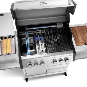 - LIEFERUMFANG: Abdeckhaube, GN-Food Container (6 l), Akazienholz-Schneidebrett, Zubehörhaken, Smokebox, Schlauch und Druckminderer (50 mbar)