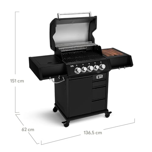 - GASGRILL MIT HECKBRENNER: Neben den Hauptbrennern hat Gasgrill EARL auch einen Heckbrenner an Bord. Dieser ist ideal für den Einsatz mit deinem Drehspieß und macht nicht nur dein Grillhähnchen extra saftig und rundherum knusprig.