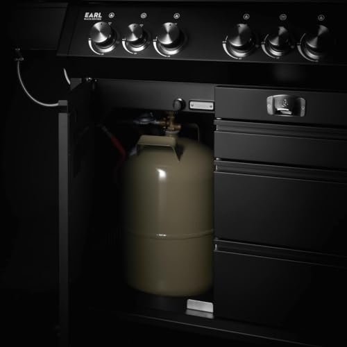 - VOLLE LEISTUNG: Unser Gasgrill mit Heckbrenner kommt mit geräumigem Unterschrank aus Edelstahl und bietet genug Platz für deine 11 kg-Gasflasche. 3 Schubladen, Vollgummirollen und abklappbare Seitentische machen EARL zur flexiblen BBQ-Station.