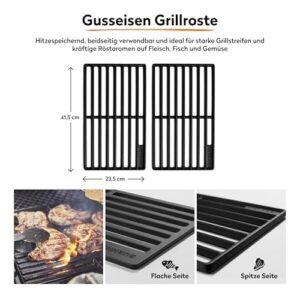 - MASSIVE GUSSEISEN-GRILLROSTE - 47,5 x 41,5 cm Grillfläche für bis zu 5 Personen + optimale Hitzeverteilung dank W-Shape Flavor Bars