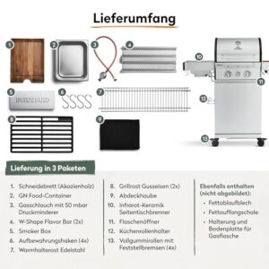 - HOCHWERTIGE ABDECKHAUBE INKLUSIVE - Wetterfeste & UV-beständige Grillabdeckung, wird zusammen mit dem Grill in 3 separaten Paketen geliefert