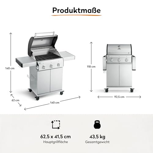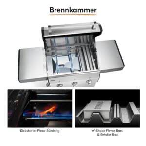 - MAXIMALE BBQ POWER - 2 stufenlos regulierbare Edelstahl-Stabbrenner & Deckelthermometer