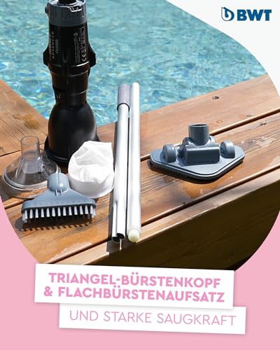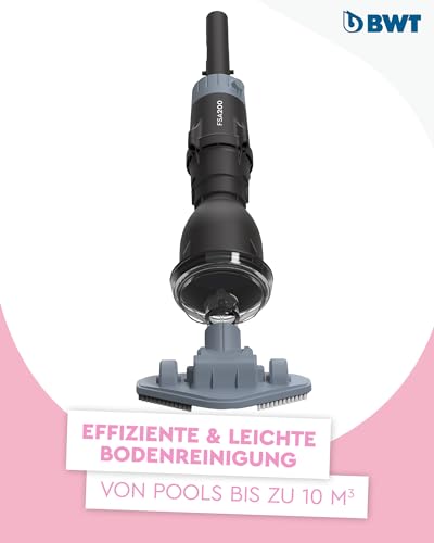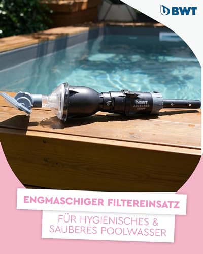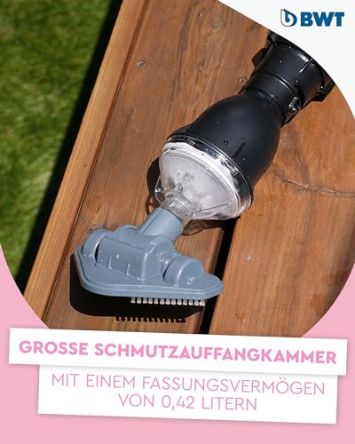 - Große Schmutzauffangkammer: Der BWT Poolsauger FSA200 hat ein Fassungsvermögen von 0,42 Litern mit einem engmaschigen Filtereinsatz, der selbst feinste Partikel zuverlässig auffängt und für eine effiziente Reinigung sorgt.
