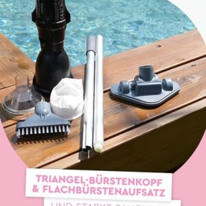 - Einfache Reinigung: Starke Saugkraft und Triangel-Bürstenkopf für eine effiziente und leichte Reinigung von Pools bis zu 10 m³, entfernt mühelos Schmutz, Ablagerungen und feine Partikel für kristallklares Wasser mit diesem Pool Reinigungsset.