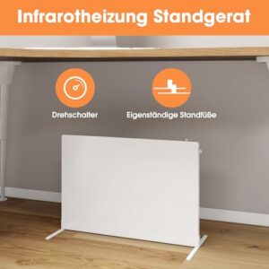 - 【Zwei Installationsmöglichkeiten】Kann unter dem Schreibtisch als platzsparende Fußheizung verwendet werden, um Beine und Füße zu wärmen, oder auf Standfüßen als tragbarer Infrarot-Heizer genutzt werden. Flexibel und praktisch für jeden Einsatz.