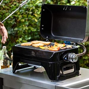 - Breiter Grill ohne Anrufe: Trotz seiner Kompaktheit bietet der kleine Gasgrill mit 48 x 26 cm einen gut dimensionierten Grillrost aus emailliertem Gusseisen; im Grill integrierte Flammenabdeckung