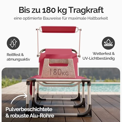 - VERSTELLBAR - Die 5-fach einstellbare Rückenlehne des Liegestuhles ermöglicht dir eine angepasste Liegeposition. Das Sonnendach ist individuell anpassbar, sodass du immer ausreichend Schatten im Gesicht hast. Das Dach kann bei Bedarf abgenommen werden