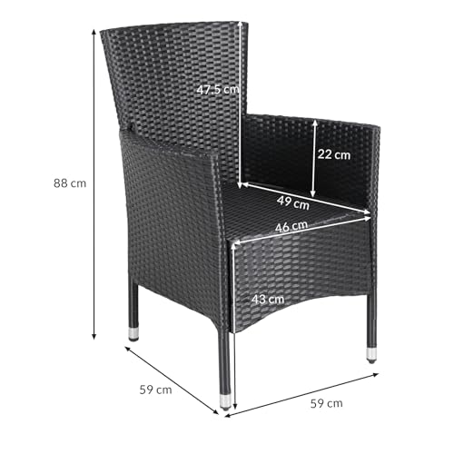 - VIELSEITIG: Durch das zeitlose Design kannst du die, 59x59x88cm, Sessel in der Farbe Schwarz nicht nur im Outdoor-Bereich verwenden, sondern auch perfekt für den Innenbereich oder deinen Wintergarten und sind zudem auch im 6er Set erhältlich.