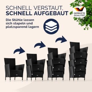 - WETTERFEST & ROBUST: Das handgewobene Polyrattan ist wetterfest, UV-lichtbeständig, schmutzabweisend und einfach zu reinigen. Dank des galvanisierten, pulverbeschichteten Stahlgestells sind die Gartenstühle langlebig und bis 160kg belastbar.