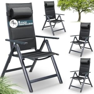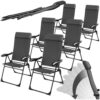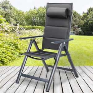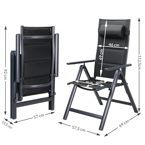 - VERSTELLBARE RÜCKENLEHNE: Durch die 8-fach verstellbare Liegefunktion, lässt sich die Lehne von aufrecht bis nahezu liegend, über die Armlehnen einstellen. Das Gewebe der Campingstühle zeichnet sich durch eine hohe Strapazierfähigkeit aus und ist bis max. 120 kg belastbar.