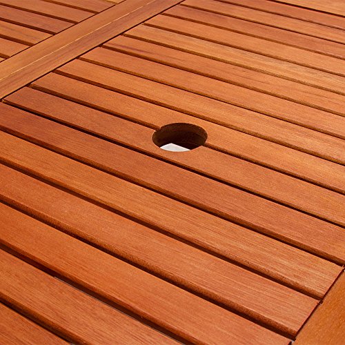 - PRAKTISCHES DESIGN - Der klappbare Esstisch für bis zu 6 Personen, verfügt über ein zentrales Schirmloch - ideal für sonnige Tage um für perfekten Schatten zu garantieren. So genießt du deine Zeit mit deinen Liebsten, im Garten oder auf der Terrasse stets angenehm geschützt.