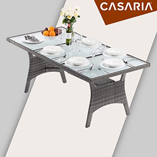 - STILVOLLE GARTENMÖBEL: Der 190x90x74cm große Gartentisch, von CASARIA, bietet für bis zu 8 Personen Platz und setzt durch die Milchglas- Tischplatten ein Highlight. Nutze den Esstisch einfach für deinen Garten, Balkon, Terrasse oder Wintergarten.