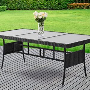- ROBUSTE GLASPLATTE - Die 5 mm dicke Tischglasplatte ist äußerst widerstandsfähig und eignet sich perfekt für Ihren Außenbereich. Sie können den Esstisch, aus hochwertigem Polyrattan, natürlich auch im Innenbereich aufstellen, da er sich perfekt durch sein elegantes Design einfügt.