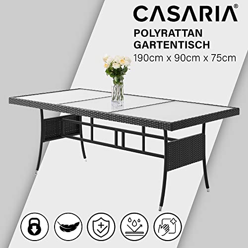 - ELEGANTER ESSTISCH - Der 190x90x75cm große Gartentisch von CASARIA bietet Ihnen für bis zu 8 Personen Platz und ist der Hingucker bei Ihrer nächsten Grillparty. Gestalten Sie Ihre Terrasse ganz nach Ihren Vorstellungen und genießen Sie gemütliche Stunden an Ihrem neuen Tisch.