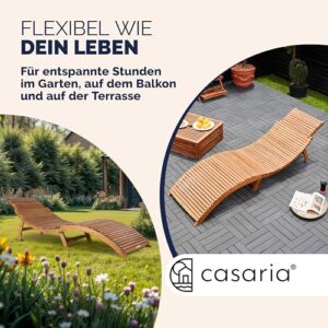 - SONNIGE AUSZEIT - Die Sonnenliege von CASARIA, aus FSC-zertifiziertem Akazienholz, bietet dir pure Entspannung. Genieße den Sommer auf deinem Balkon, der Terrasse oder im Garten. Die breite, ergonomische Liegefläche und die hohe Belastbarkeit von 320kg sorgen für höchsten Komfort und Stabilität.