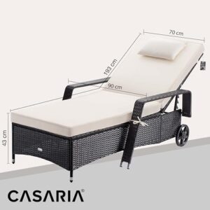 - OPTIMALER KOMFORT - Die CASARIA Sonnenliege, mit einer Breite von insgesamt 90cm und bequemen 7cm dicken Polster, sorgen für maximalen Liegekomfort. Die angenehme Sitzhöhe von 43cm erleichtert dir das Aufstehen. Genieße deine Wohlfühloase im heimischen Grün und schalte vom Alltag ab.